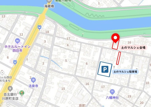 ※お車でお越しの方はマップ記載の土のマルシェ駐車場へお停めください。
