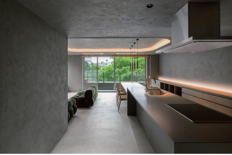 個人邸 / 壁・天井:黒漆喰ラフ仕立て、床:claytex別注
