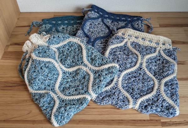 コットンや天然素材を使った、かぎ針編みの小物たち。